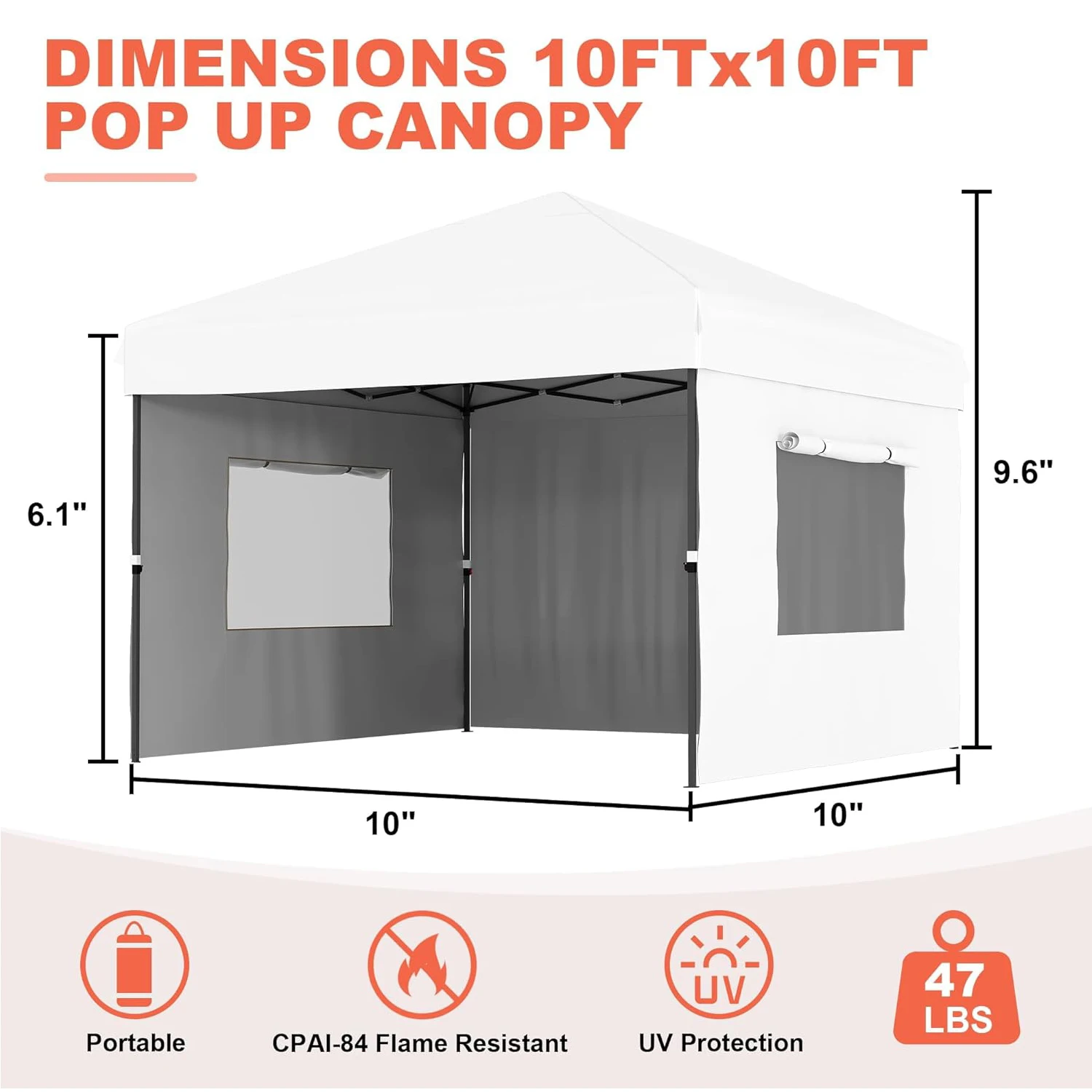 3 Adjustable Heights: By simply pressing the buttons, you can easily adjust the canopy height to 5.9', 6.23', or 6.56'. This allows you to customize it according to your requirements, whether you want to display products, create a comfortable shelter, or simply relax outdoors.