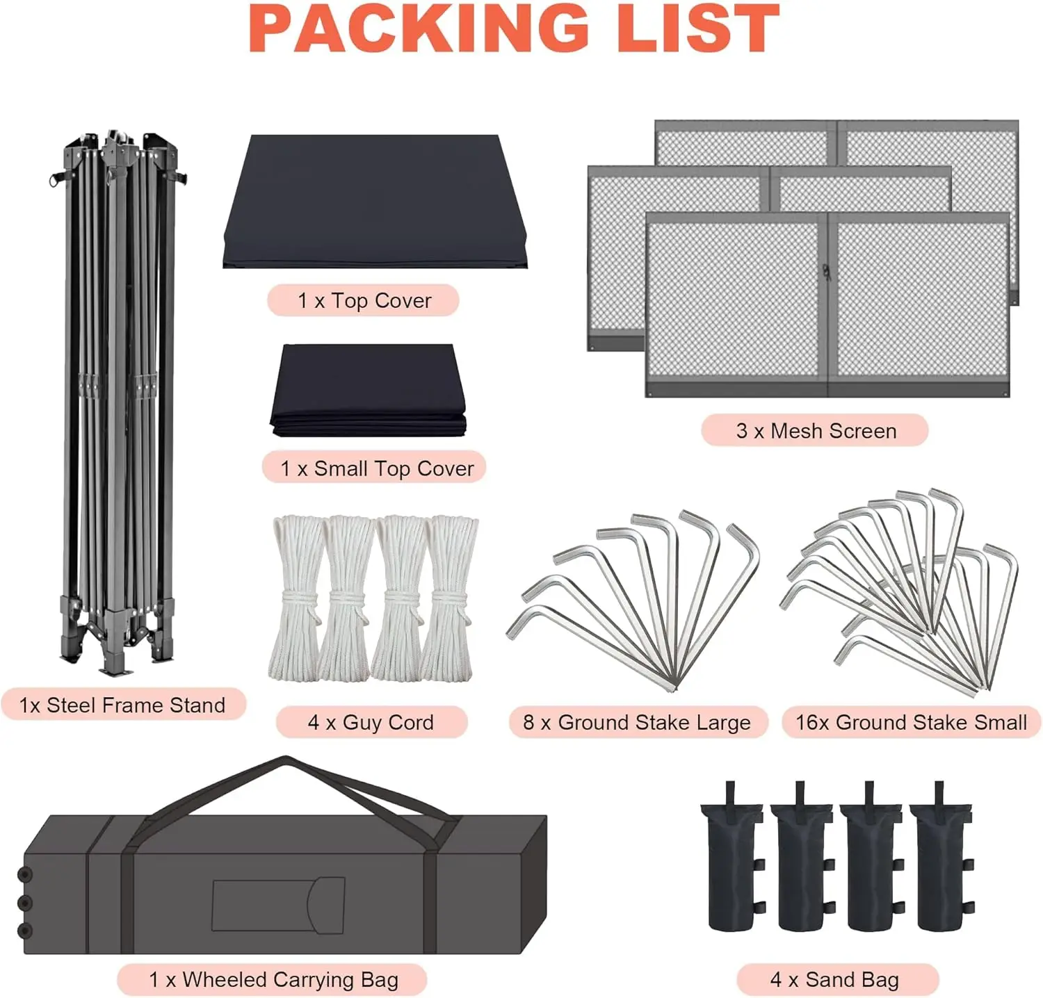 Sturdy & Secure: Multi link metal structure and sandbag sensure maximum stability, 4 wind ropes & 8 stakes for extra security. Perfect for everyday outdoor adventures!