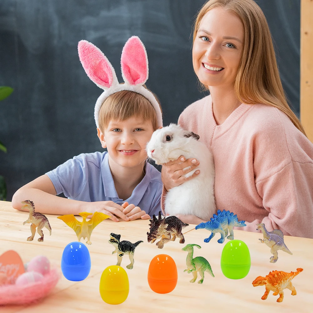12 Pack Prefilled Easter Eggs with Dinosaur Toys Easter Basket Stuffers Surprise Easter Eggs for Kids Easter Egg Hunt Game Features: 1. Convenient Playtime: These prefilled Easter eggs come with 12 adorable mini dinosaur toys, making them perfect for children's play and Easter egg hunts without the hassle of filling them yourself. Specification: Color: as shown Material: ABS Size: Egg: 2.4*1.7in Dinosaur: 2.3*1.9*1.4in Note: