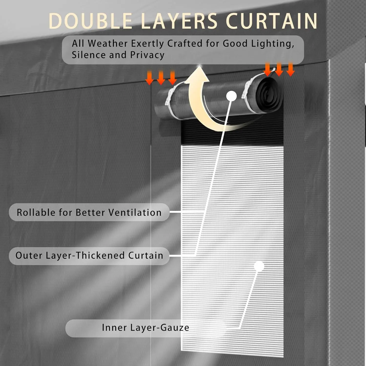 【Removable Sidewalls Window and Doors】This carport shelter has 2 removable sidewalls with Roll-up Ventilation Windows. It can help with airflow, and prevent moisture. It also has two removable doors with zippers. You can roll the doors up or down as you wish. Or remove all the sidewalls and doors, only leave the canopy cover on for outdoor activities.