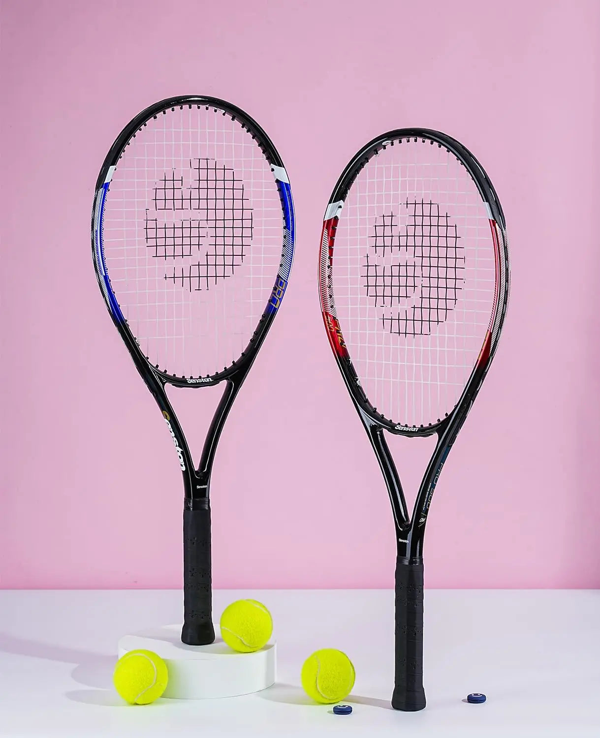 Elevate your tennis game with this comprehensive 27-inch racket set designed for adult players. Perfect for doubles matches or practice sessions, this kit includes everything you need to get started on the court. Key Features: - Two high-quality tennis rackets crafted for optimal performance and durability, suitable for both beginners and intermediate players. - Three premium tennis balls that provide consistent bounce and excellent playability on various surfaces. - Two comfortable overgrips that enhance handle comfort and absorb sweat during intense gameplay. - Two vibration dampers to reduce racket vibrations, minimizing arm fatigue and improving control. Benefits: 1. Complete Set: Everything included in one package—no need for additional purchases. Ideal for gifting or personal use. 2. Ergonomic Design: The 27-inch length offers a balanced feel, promoting better swing mechanics and accuracy. 3. Enhanced Comfort: Grips and dampers work together to ensure a secure hold and smoother hits, reducing strain during long matches. 4. Versatile Use: Suitable for recreational play, training sessions, or competitive games at parks, clubs, or home courts. 5. Durable Construction: Made from resilient materials that withstand regular use while maintaining performance over time. This set is engineered to support your athletic endeavors with reliable equipment that combines functionality and value. Whether you're practicing solo or enjoying a match with friends, it delivers the tools needed for an enjoyable tennis experience.