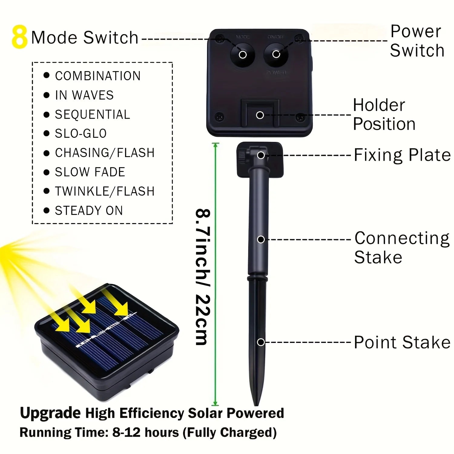 4Pcs 160ft Solar String Lights - 400Pcs Led Outdoor Fairy Lights, 8 Modes, Waterproof for Garden, Terrace, Tree Decoration - Great for Christmas, Weddings and Party (Warm Light) Ip44