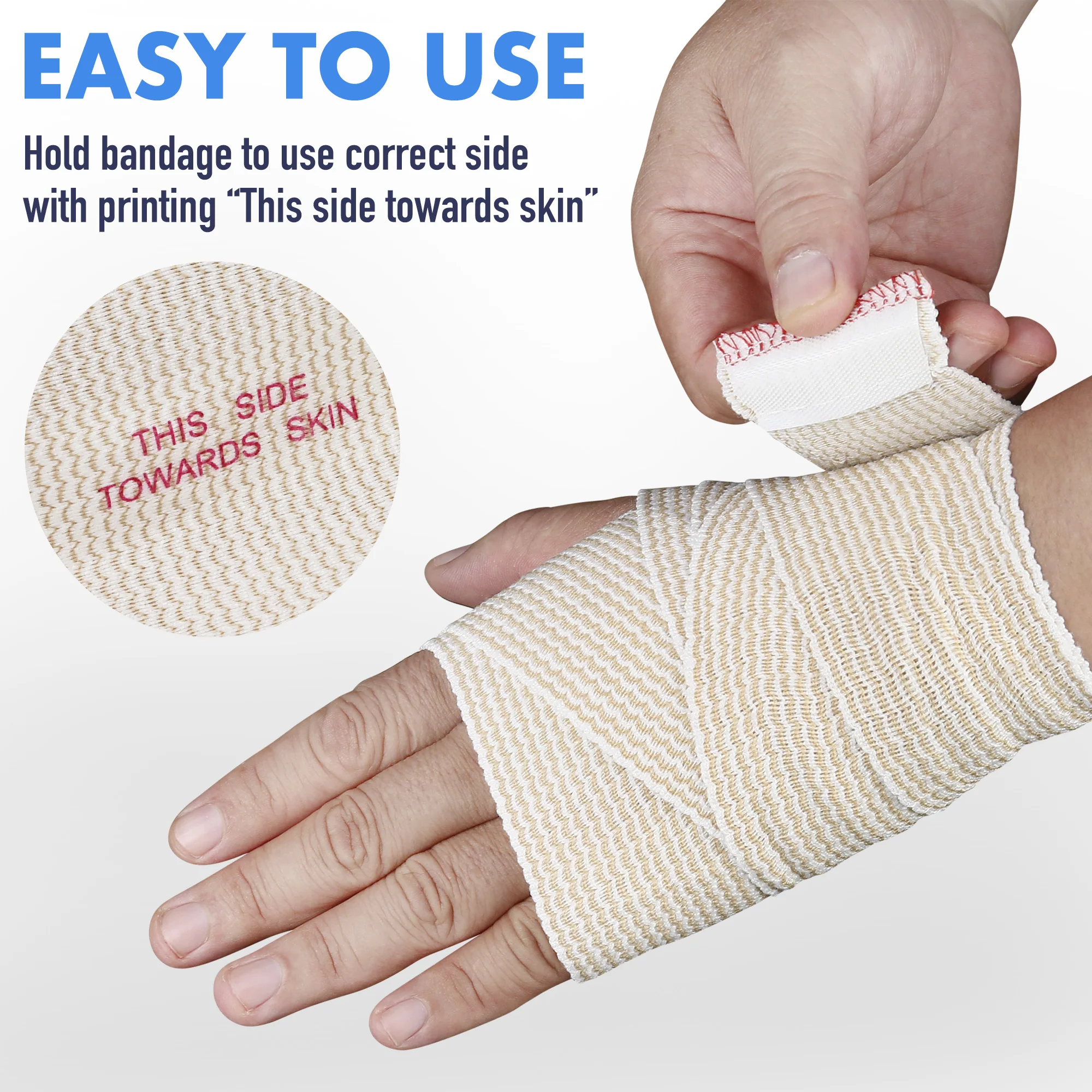 Elastic Bandage Wrap, 4"x 15 Feet, 4 Pack Cotton Compression Bandages with Self-Closure on Both Ends, Support First Aid