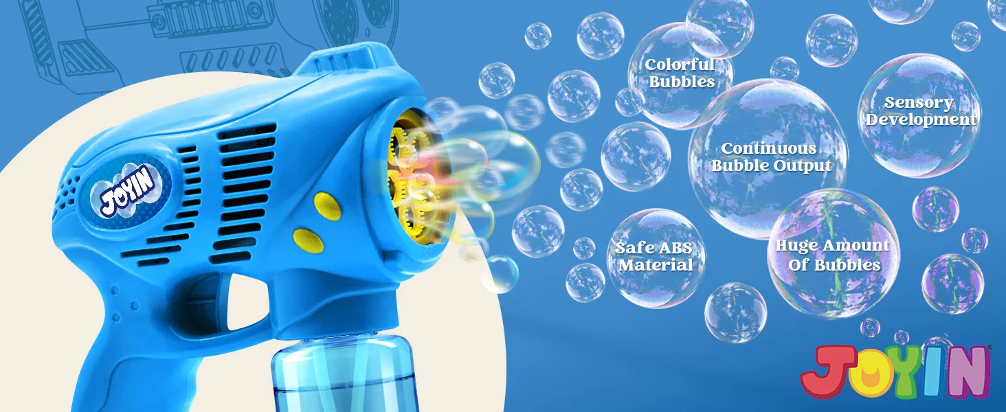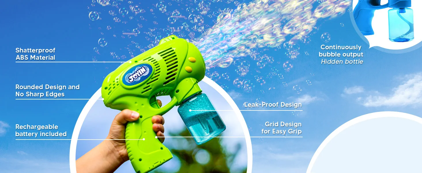 HIGH QUALITY: Experience durability and reliability with our bubble guns, crafted from shatterproof ABS materials and designed to be leakage-proof, ensuring a high-quality and long-lasting bubble-blowing experience without the worry of sticky residues or stains.