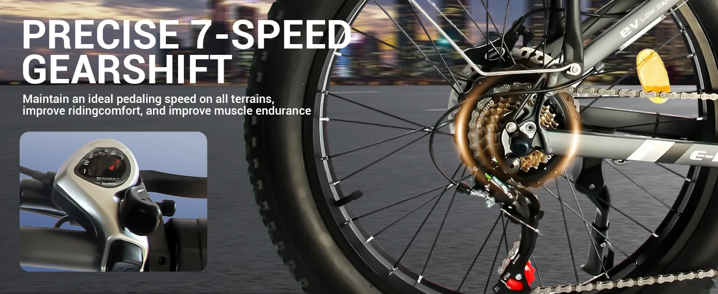 35MPH Top Speed & 7-Speed Gearing:Shift seamlessly with the Shimano 7-speed drivetrain and hit thrilling speeds up to 35MPH (where legally permitted).