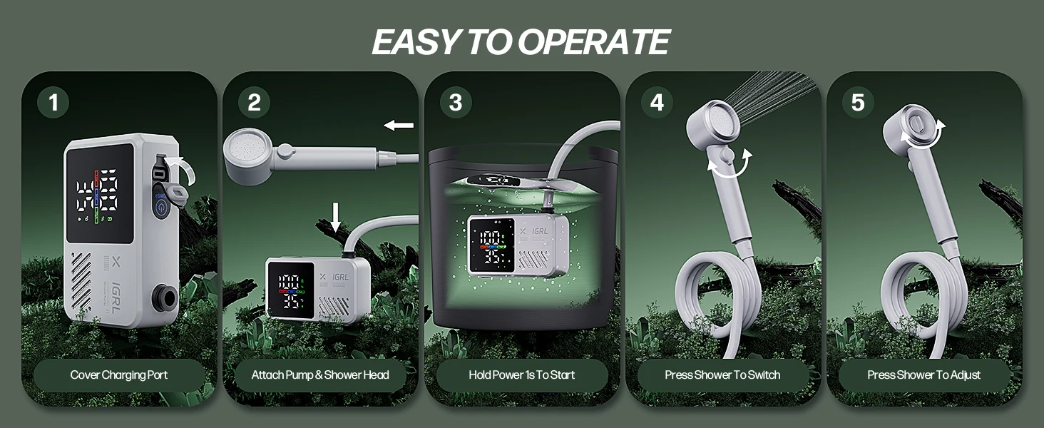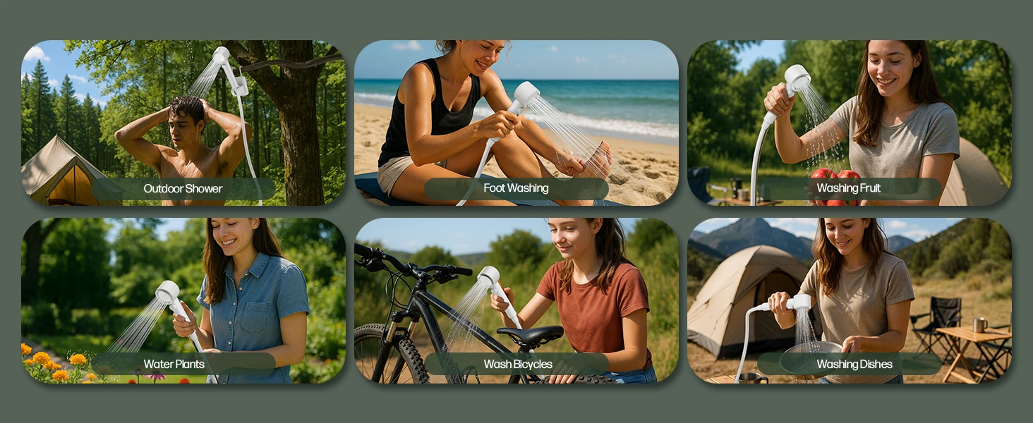 💦【Instant Water Flow in 1 Second】No waiting needed — this camping shower delivers water in just one second, 3x faster than most other portable models. Perfect for rinsing off sand, sweat, or smoke on the trail, beach, or campsite.