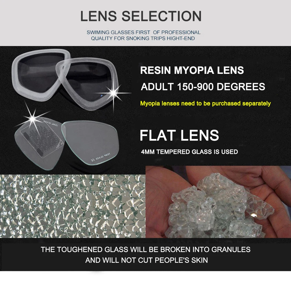 2. Anti-Fog Tempered Glass: Experience crystal-clear underwater views with our anti-fog, high-definition tempered glass lenses. These , scratch-resistant lenses of this professional snorkeling mask withstand high pressure and prevent fogging, allowing for uninterrupted exploration beneath the waves.