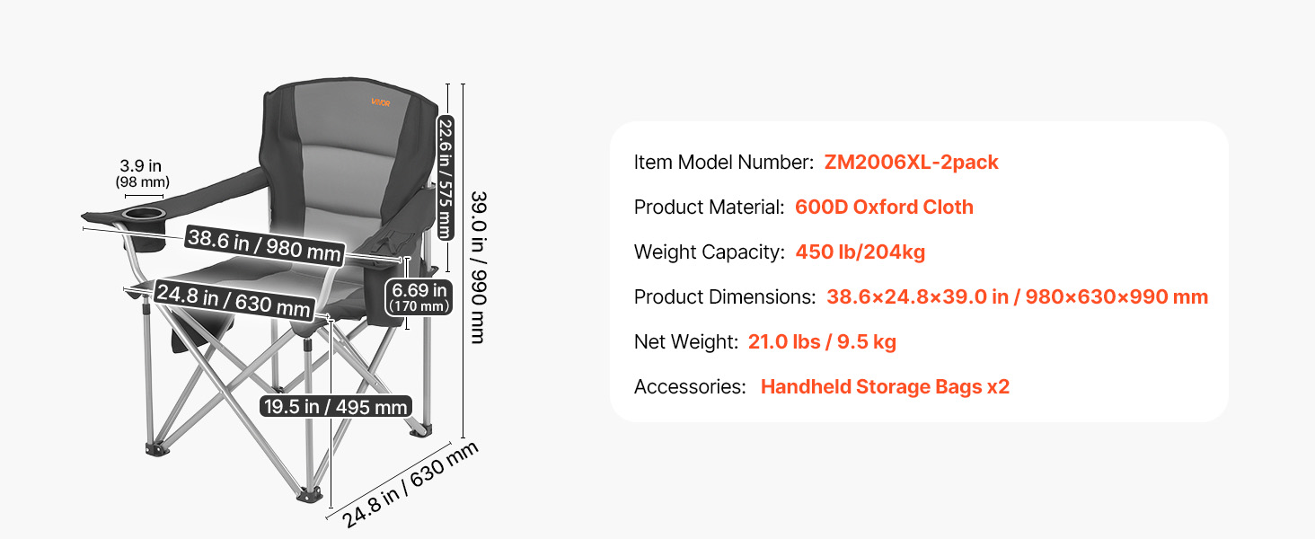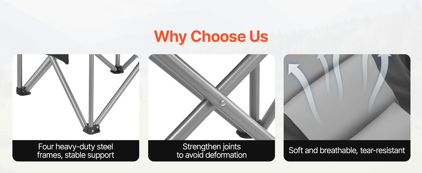 Heavy-Duty 450 Lbs Load: Built for strength, these folding camping chairs support up to 450 lbs / 204 kg. The reinforced steel frame, thickened steel tubes, and X-shaped structure ensure stability, rust-resistance, and long-term durability