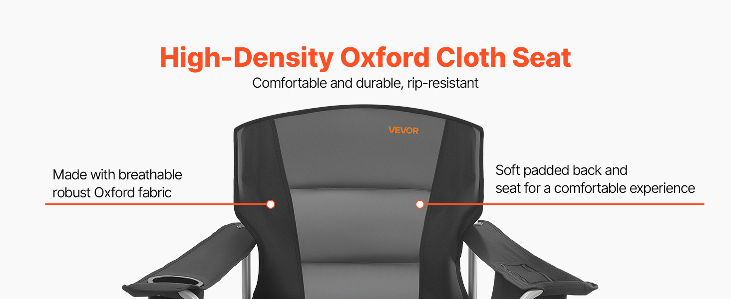 Premium 600D Oxford Fabric: Made with 600D rip-stop Oxford fabric, this camping chair is tearing-resistant and abrasion-proof, making it ideal for camping, fishing, and BBQ. The backrest features 200g/m² solid cotton padding for lasting support